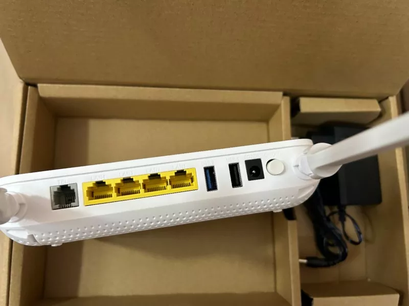 Txinan TENKILOMETERS hornitzaileak egindako HN8546X6 BAND BAND WIFI6 XG-PON ONU ONT FTTH XG-PON eta Wi-Fi 6 ONT Terminala da 4 * GE + 1 * POTS + 2 * USB + 2.4G / 5G 11ax WIFI, 5dBi.